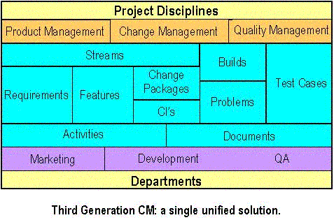 3G Process affects a number of management applications encompassing a significant portion of the development cycle. In a 3G CM tool, it is not sufficient to glue together these applications. They must be fully integrated, seamlessly, so that the user is not aware of multiple management tool interfaces or the delays which occur by having queries which span multiple repositories. It's also imperative that the processes reflect the customer's processes. Yet the customer does not want to be burdened with defining the correct process up front before using the CM tool. In fact, the customer won't understand the CM problem domain until well along the development and release road map. So it will be imperative that incremental changes can be made quickly and easily without any down time. Yes, But Can I Get At My Data Reliability and availability are crucial factors when deadlines are tight or teams are large. An outage of even a couple of hours can be costly. A 3G CM tool is not at the mercy of a server or network link. Nor is it acceptable that the tool presents poor performance as the number of concurrent users climb. 3G criteria includes: